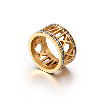 Números romanos personalizados circón chapado en oro anillo de acero inoxidable que no se deslustra joyería de moda impermeable para mujeres al por mayor