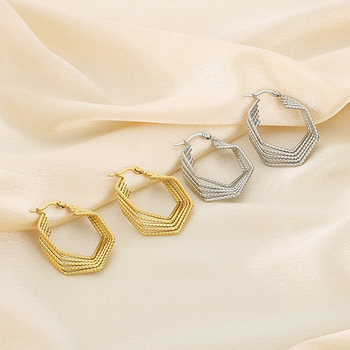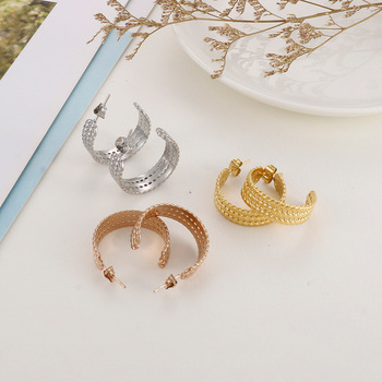 Pendiente de aro de acero inoxidable chapado en oro trenzado personalizado, resistente al agua, joyería de moda para mujer, venta al por mayor