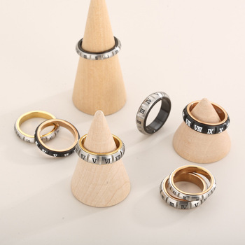 Anillo de acero inoxidable con números romanos personalizados, chapado en oro de 18 quilates, resistente al agua, joyería de moda para hombres y mujeres, venta al por mayor