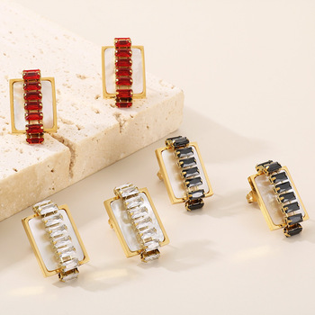 Rectangular Simple Zircon 18K chapado en oro no deslustre pendiente de acero inoxidable impermeable joyería de moda para mujeres al por mayor