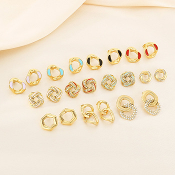 Croce colorato smalto zircone 18K placcato oro Non appannato in acciaio inox orecchino impermeabile gioielli di moda per le donne all'ingrosso