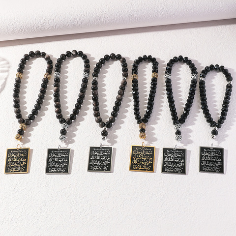 Ossidiana perline islamiche arabica musulmana calligrafia in versi religiosi ciondolo auto in acciaio inossidabile collane di gioielli per Corano